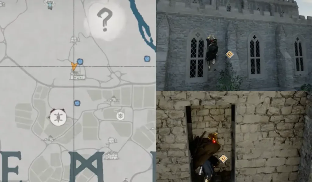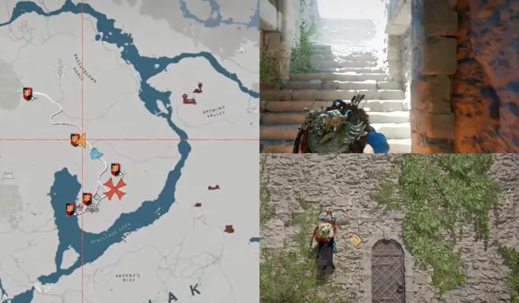 Si trova sempre nell’area settentrionale di Demeniss, stavolta a nord del fiume e poco a sud della Valley of the Moon. Qui troveremo un castello gigantesco che non potete perdervi e dovrete dirigervi verso l’ingresso principale. Alla vostra destra c’è un piccolo sentiero rialzato che costeggia le mura e, sopra alcune impalcature di legno, potrete scorgere una piccola apertura nel muro di cinta.