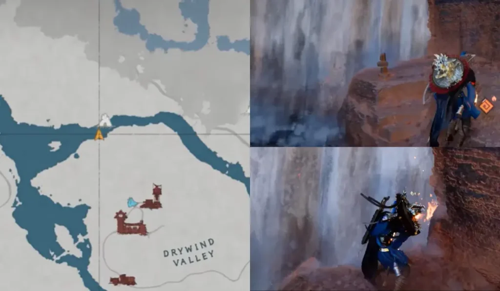 Restiamo sempre nell’area ad est di Demeniss ma questa volta siamo sulle rive del fiume fra Breezeblown Knoll e Drywind Valley. Dobbiamo individuare una cascata, dietro la quale si trova la Warrior’s Soul Cave. C’è una piccola piattaforma di fianco a questa enorme cascata, che potete usare per introdurvi nella caverna e avvicinarvi al forziere, per poi raccogliere il Dark Markman’s Cloak.