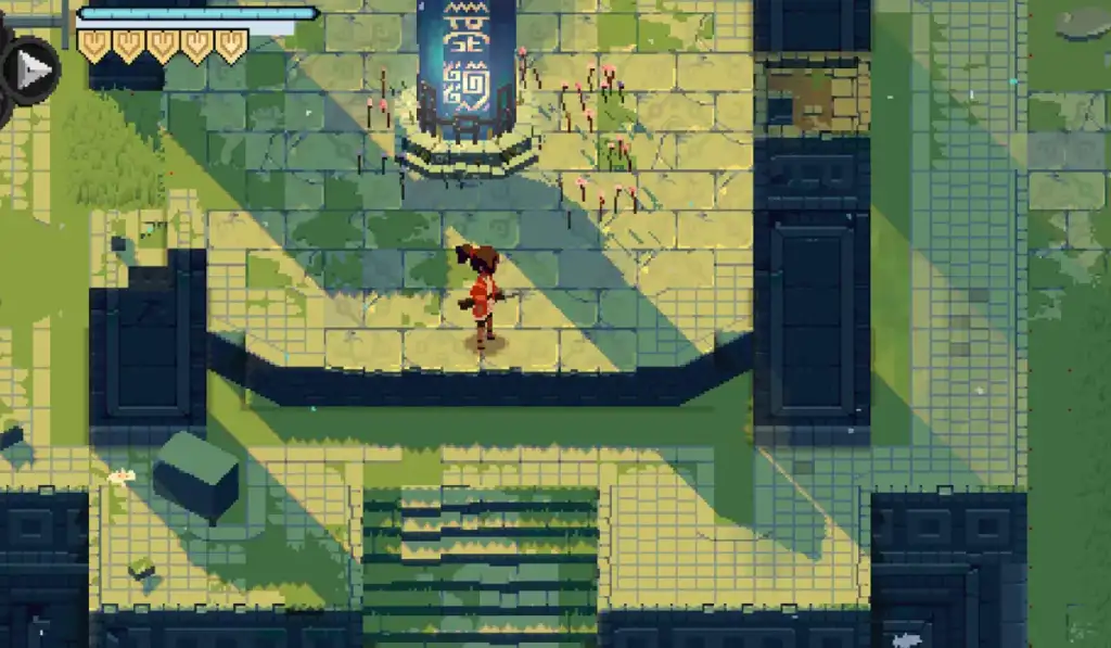 Ci caliamo nei panni di una protagonista dal mantello rosso, in grado di muoversi in modo agile ed acrobatico fra le rovine in pixel-art che popolano questo mondo. L’obiettivo del gioco sarà semplice, ovvero tentare di muovere il personaggio fra questo labirinto di rovine allagate utilizzando salti e piroette per condurlo al cristallo che si cela alla fine di ogni livello.