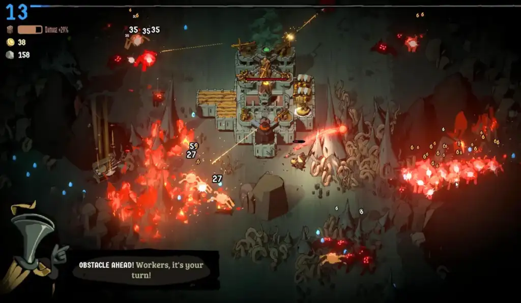 Ci viene affidata la torre di una città in continuo movimento, che prosegue di cancello in cancello su un percorso dritto. Il nostro personaggio è incaricato di allontanare e distruggere tutte le orde di nemici che si avvicinano alla torre, per salvaguardarle e far in modo non terminare la barra della salute. Per compiere la nostra missione scenderemo sul campo di battaglia in prima persona e, ad ogni nemico sconfitto, raccoglieremo degli speciali minerali blu che permetteranno alla città di salire di livello e potenziarsi. Ad ogni livello il tempo si ferma e possiamo scegliere un potenziamento per rendere la città più potente e in grado di difendersi meglio. Stiamo parlando di torrette esplosive, archi che scoccano frecce ghiacciate e tanti altri upgrade. La città però diventerà così sempre più grande e quindi progressivamente più difficile da difendere. Non è un segreto che un bersaglio più grande è anche più facile da colpire, un concetto elementare che i nemici sfrutteranno tentando di mettere fine alla nostra run.