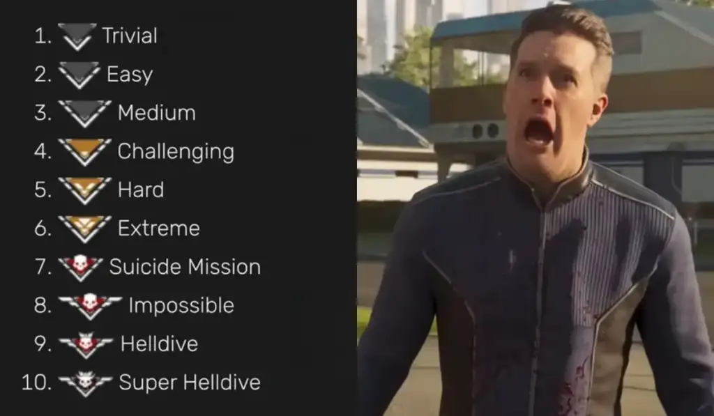 Helldivers 2 è un titolo che offre diversi livelli di difficoltà, in modo da accogliere tutti i giocatori, a prescindere dal loro livello di esperienza e abilità. Partiamo dal livello più semplice denominato ‘Trivial’ a quello più ostico denominato ‘Super Helldive’. All’inizio della nostra avventura avremo accesso soltanto ai livelli più facili, per poi sbloccare quelli più difficili col tempo e l’esperienza.