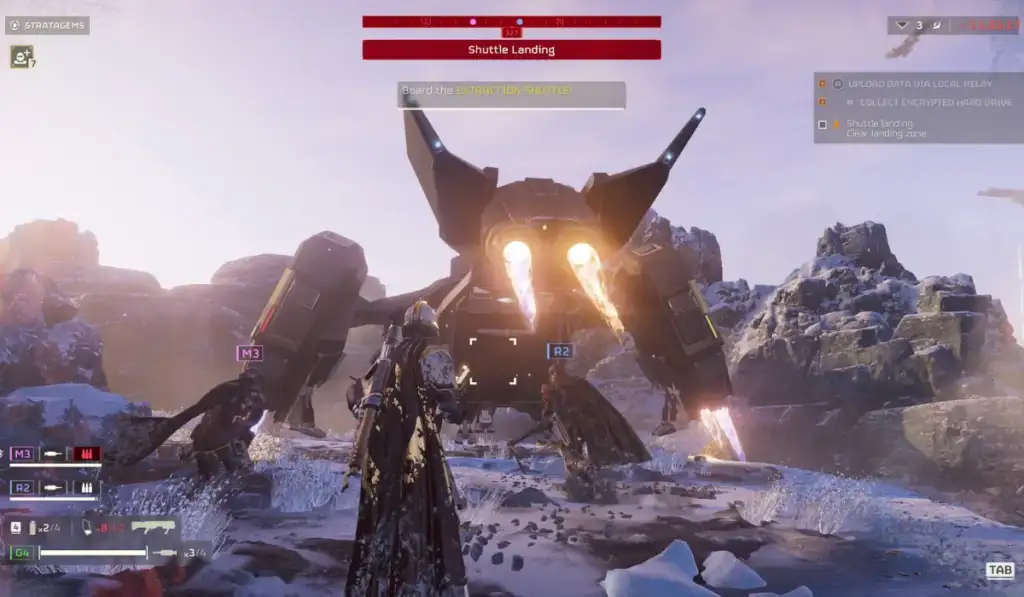 Per resuscitare gli alleati servirà utilizzare uno Stratagemma ben precisio chiamato ‘Rinforzi’. Funziona un po’ come una granata, che dovrà essere lanciata al suolo per determinare dove l’alleato riapparirà sulla mappa. Ricordatevi però che potrete utilizzare questo Stratagemma un numero limitato di volte, quindi quando vi accorgete di essere a secco, cercate di concentrarvi al massimo.