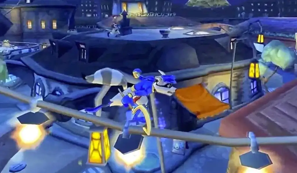 Il level design di Sly Cooper è molto più intricato e aperto rispetto ai molti dei suoi contemporanei. Sucker Punch utilizza molto la verticalità e inserisce sezioni di stealth in cui il protagonista deve evitare di finire nel cono visivo del nemico. Questo approccio agevola anche la narrativa di Sly Cooper, che pur essendo semplice è interessante da seguire lungo il percorso che ci porta fra un mondo e l’altro.
